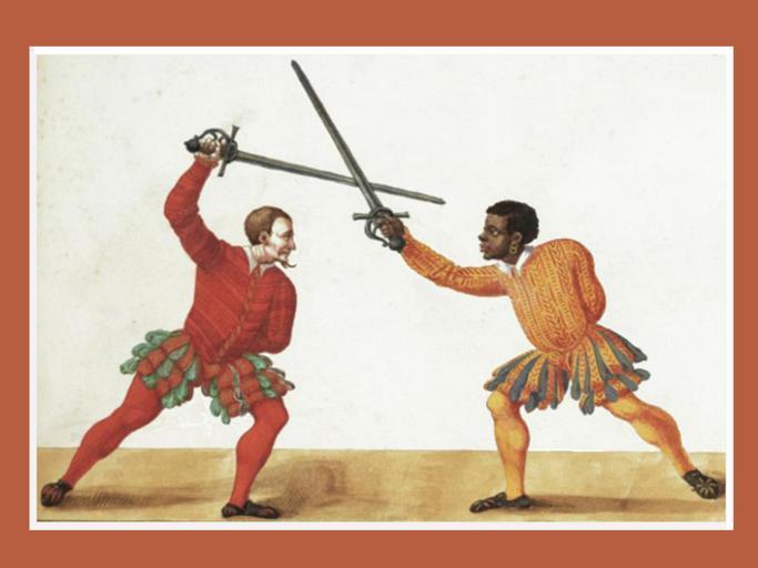 Keywords: Paulus Hector Mair.- Two fencers, one of African descent, wielding an early rapier De arte athletica, Augsburg, Germany, ca 1542.png fr Paulus Hector Mair - A fencer of African descent wielding an early rapier or sidesword De arte athletica published in Augsburg Germany ca 1542 2015-09-18 https //outofthiscentury wordpress com/category/bizarre-and-unusual/ The Greatest African American and Afro-American Martial Artists in History Paulus Hector Mair other versions PD-old-70-1923 Uploaded with UploadWizard Fencing 1542 books African in Europe Paulus Hector Mair |