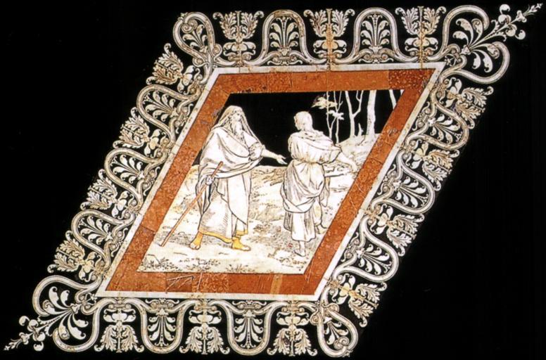 Keywords: Pavimento di siena, esagono, elia incontra la vedova nel bosco (franchi).jpg Pavimento di siena esagono elia incontra la vedova nel bosco franchi scan 16th/19th century see filename or category PD-Art Cathedral Siena - Floors/Stories of Elijah Alessandro Franchi |