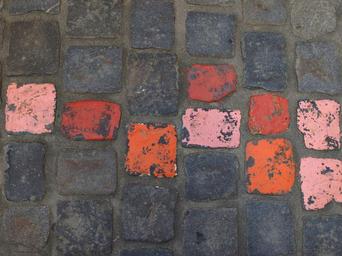 Keywords: paving stones ground road cobblestones background pattern structure paved city stone go sidewalk pavement old town pink red mark tagged highlighting highlighted texture