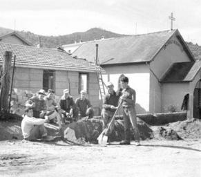 Keywords: algeria pax men mark conrad markconrad wayne lapp waynelapp jacob schrock jacobschrock marvin moyer marvinmoyer carl smeltzer carlsmeltzer robert weaver robertweaver ben yoder benyoder mennonite board of missions mennoniteboardofmissions blackandwhite monochrome outdoor building architecture black and white Caption: PAX men in Algeria left to right: Mark Conrad, Wayne Lapp, Jacob Schrock, Marvin Moyer, Carl Smeltzer, Bob Weaver and Ben Yoder. circa 1960. Citation: Mennonite Board of Missions. Photographs. Algeria Pax, 1955-1963. IV-10-7.2 Box 1 folder 27, photo #99. Mennonite Church USA Archives - Goshen. Goshen, Indiana. Caption: PAX men in Algeria left to right: Mark Conrad, Wayne Lapp, Jacob Schrock, Marvin Moyer, Carl Smeltzer, Bob Weaver and Ben Yoder. circa 1960. Citation: Mennonite Board of Missions. Photographs. Algeria Pax, 1955-1963. IV-10-7.2 Box 1 folder 27, photo #99. Mennonite Church USA Archives - Goshen. Goshen, Indiana. |