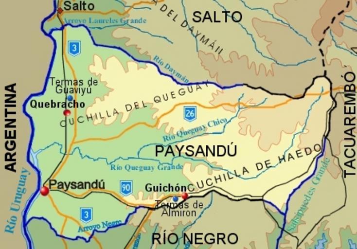 | Keywords: Paysandu Department map.jpg en Map of Paysandu Department Uruguay own For the background I have used part of File Uruguay fisico png created and released to Public Domain by User Jordevi Hoverfish 2012-09-12 Cc-zero Maps of PaysandĂș Department |
