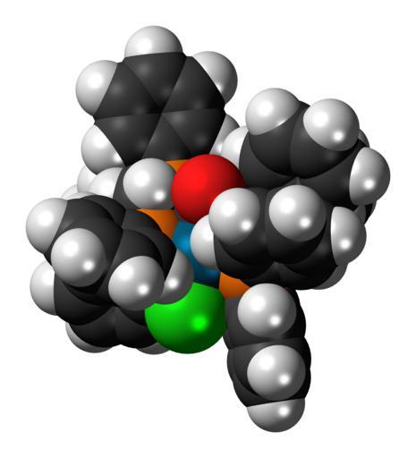 Keywords: Pd2Cl2(CO)(dppm)2 3D spacefill.png Space-filling model of the Pd2Cl2 CO dppm 2 complex a typical A-frame complex Colour code 505050 Carbon C black<br> F0F0F0 Hydrogen H white<br> F51E1E Oxygen O red<br> FA8C00 Phosphorus P orange<br> 14F014 Chlorine Cl green<br> 006881 Palladium Pd teal<br> 2011-07-03 own DS Visualizer Jynto talk Ball-and-stick version Stick version Skeletal stick version cc-zero Images by Jynto Palladium complexes Dppm complexes chloro complexes carbonyl complexes |