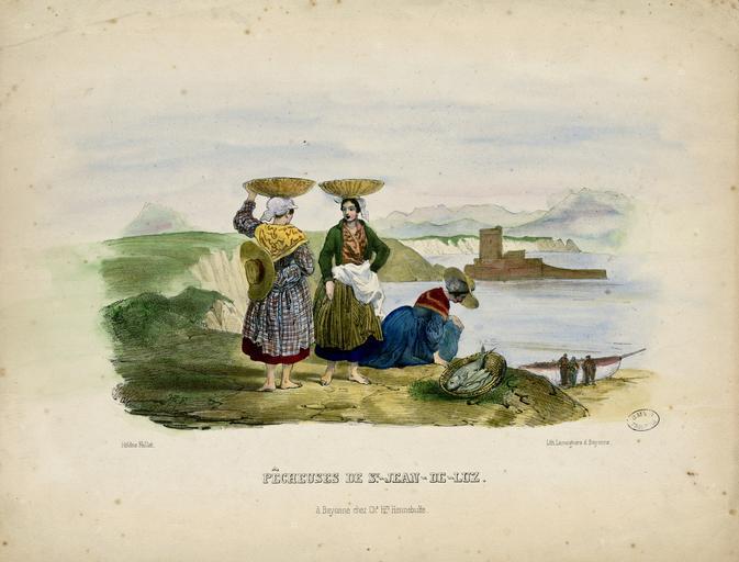 | Keywords: Pêcheuses de St-Jean-de-Luz - Fonds Ancely - B315556101 A HENNEBUTTE 2 009.jpg Fait partie d'un recueil de lithographies pl 1 2 6 et 7 imprimées chez Lemercier à Paris ; les pl 6 et 7 sont extraites de Album des deux Frontières La pl 1 n'est pas la même que la pl 12 de l'Album au premier plan le pont est en bois et non en pierre Pl 3 4 5 et 9 lithographiées chez Lamaignère à Bayonne La pl 9 en coul est d'Hélène Feillet Pl 8 et 10 lith chez Bernain La pl 8 en coul est d'Hélène Feillet Ancely René 1876 - 1966 Possesseur fre public domain domaine public B315556101_A_HENNEBUTTE_2_009 jpg image/jpeg 1 f de pl lithogr ; 27 cm oblong Hennebutte Charles-Henri Editeur Lamaignère Lithographe http //numerique bibliotheque toulouse fr/collect/general/index/assoc//ark /74899/B315556101_A_HENNEBUTTE_2_009 dir/B315556101_A_HENNEBUTTE_2_009 jpg Bibliothèque municipale de Toulouse A-HENNEBUTTE 9 Creator Hélène Feillet http //catalogues toulouse fr/web2/tramp2 exe/do_keyword_search/log_in setting_key BMT1 servers 1home query p001000 Bayonne Place du Théâtre Vue du Port Vieux à Biarritz Bayonne Place du Théâtre Bayonne Vue du Port Vieux à Biarritz Vue générale de Cauterets - Etablissements thermaux des Pyrénées - Vallée d'Argelès Eaux-Bonnes - Vue prise de la promenade horizontale - Vallée d'Ossau Costumes basques Costumes bayonnais vignette http //numerique bibliotheque toulouse fr/collect/general/index/assoc//ark /74899/B315556101_A_HENNEBUTTE_2_009 dir/B315556101_A_HENNEBUTTE_2_009_thumb jpeg century 19 Pêcheuses de St-Jean-de-Luz B315556101_A_HENNEBUTTE_2_009 lithography - print - colors - color lithograph Women in art Fishwives Fishing in France Fishing baskets People with baskets in art Seas in art Skirts in art Vests Castles in art Seaside Dikes Dresses in art Traditional costumes of the Basque Country Boats French national costumes Caps in art Hats in art Historical images of Saint-Jean-de-Luz Historical images of Pyrénées-Atlantiques People of Pyrénées-Atlantiques Cliffs Hélène Feillet National costumes in art Shawls Bodices |