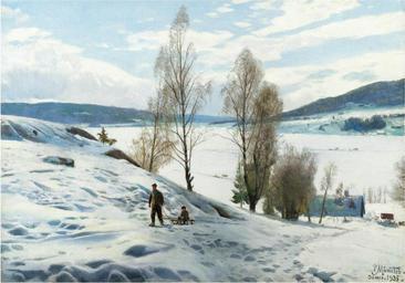 Keywords: Peder Mønsted - Vinterdag ved Odnes, Norge.jpg Artwork Creator Peder Mønsted 1935 Oil on canvas cm 35 5 50 5 object history Provenienz Kleis Georg Westerbro credit line signed and dated P Mônsted / Odnes 1935 lower right; titled and inscribed Randsfjorden on the reverse accession number http //www sothebys com/de/auctions/ecatalogue/2008/the-scandinavian-sale-l08104/lot 273 html Sotheby's PD-old-70 Peder Mønsted Winter in art Landscape paintings of Norway 20th-century landscape paintings Images from Sotheby's Sledding in Norway |