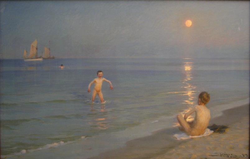 | Keywords: Peder Severin Krøyer-Boys bathing in Skagen summer evening-Statens Museum for Kunst.jpg Artwork Creator Peder Severin Krøyer 1899 oil canvas cm 153 100 Institution Statens Museum for Kunst Copenhagen 224 Den Kongelige Maleri- og Skulptursamling accession number KMS1658 object history LangSwitch Purchased directly from the artist at the Spring Exhibition at Charlottenborg on 31 March 1900 Cat 248 Købt direkte fra kunstneren på Forårsudstillingen på Charlottenborg den 31 marts 1900 kat 248 credit line signature / date http //soeg smk dk/vark asp ObjectId 10331 Statens Museum for Kunst own Yair Haklai 2010-08-19 thumb left Painting PD-old-100 Photo PD-old-100 cc-by-sa-3 0 GFDL DEFAULTSORT Krøyer Boys bathing on a summer evening at Skagen Beach Paintings by Peder Severin Krøyer Paintings by Peder Severin Krøyer in Statens Museum for Kunst Seascapes by Peder Severin Krøyer Skagen Beach Paintings of nude boys 1899 paintings in Denmark |