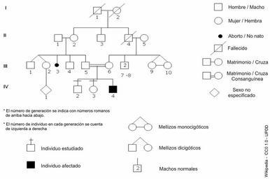 Keywords: PedigreeRep.png es Ejemplo de diagrama de pedigrí con sus símbolos asociados 2012-01-06 own J3D3 cc-zero Uploaded with UploadWizard Pedigree charts