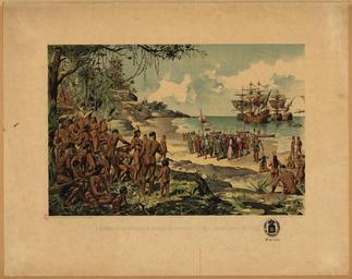 | Keywords: Pedro-e-297-a 0001 1 p24-C-R0150.jpg O desembarque dos portuguezes no Brazil ao ser descoberto por Pedro Alvares Cabral em 1500 Biblioteca Nacional de Portugal http //purl pt/6942<br/>Cota local e-297-a Biblioteca Nacional de Portugal fol 28 x 42 cm ca 1900 Creator Alfredo Roque Gameiro Other versions <gallery>File Pedro-e-297-a 0001 1 p24-C-R0150 cropped jpg Borderless </gallery> PD-old-auto-1923 1935 1500 in art 16th-century sailing ships in paintings 1900s paintings from Portugal Alfredo Roque Gameiro Brazil in history paintings Carracks in art Discovery of Brazil Images from the Biblioteca Nacional de Portugal Paintings of indigenous peoples of Brazil Pedro Álvares Cabral Porto Seguro Sailing ships of Portugal |