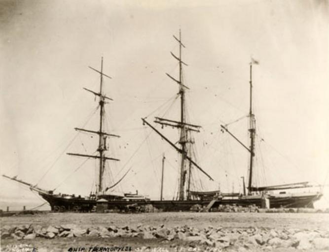 | Keywords: Pedro Nuñes ex Thermopylae (clipper) - sflib aai-0085.png en The Portuguese clipper Pedro Nuñes ex Thermopylae 1880 http //sflib1 sfpl org 82/record b1035982~S0 San Francisco Public Library Historical Photograph Collection M B Coll NO 14E Ship Thermopylae Sea Wall S F CAL 1880 PD-USGov Thermopylae ship 1868 |