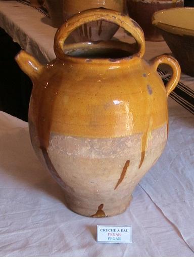| Keywords: Pegar.jpg Jug fr Cruche eu Pegar gascon Pegà from Montory French Basque Country Documentation note The piece of pottery that appears in this file not is a botijo It's a typical piece in the pottery of water in the North of Spain and South of France of possible origin franco old tribal french as càntir the doll and the mamet introduced by the restocking of the Marca Hispanica in the Catalunya Vella Also produced in the Basque country as a vessel of the same family as the Biscay pitcher Basque pegarra pedarra or kantarue higher than this and used for drinking during the agricultural tasks The correct designation today 2012 would be pitcher or jug in Spanish and was cruche a eau in French Documentation and references Natacha Seseña and Emili Sempere de Bauchige offene Kanne mit Bügel ringartigem Henkel und Abgussrohr Tülle auf der Schulter typische Form der Bügelkanne Own 2007-07-14 Asp Domestic pottery in France Ceramic jugs Pitchers in France Montory |