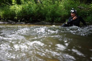 | Keywords: u. s. fish and wildlife service usfishandwildlifeservice cherokee snorkel oconaluftee landscape water creek outdoor watercourse Aquatic biologists and stream conservationists who work in the Little Tennessee River basin recently came together on the Oconaluftee River, in Cherokee, North Carolina, to learn more about hosting public snorkeling events. Jim Herrig, of the Cherokee National Forest, started public snorkeling programs in the Conasauga River basin as a way to connect people with the incredible diversity of aquatic life in Southern Appalachian streams. This outing was an opportunity for Jim to pass his knowledge on to others, as snorkeling programs emerge across the area. Credit: Gary Peeples/USFWS Aquatic biologists and stream conservationists who work in the Little Tennessee River basin recently came together on the Oconaluftee River, in Cherokee, North Carolina, to learn more about hosting public snorkeling events. Jim Herrig, of the Cherokee National Forest, started public snorkeling programs in the Conasauga River basin as a way to connect people with the incredible diversity of aquatic life in Southern Appalachian streams. This outing was an opportunity for Jim to pass his knowledge on to others, as snorkeling programs emerge across the area. Credit: Gary Peeples/USFWS |