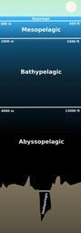 Keywords: Pelagiczone.svg The different parts of the Pelagic zone Version history v1 Based on de Bild Pelagial Tiefenzonierung png by de Benutzer TomCatX the above the waves image is copied directly from TomCatX's image v2 The first version used a linear gradient which didn't look correct the epi was to dark and the bathy too light This new version uses a nonlinear gradient where the brightness falls off logarithmically which is much closer to reality I also improved the waves on the ocean surface v3 No raster images anymore gradient for earth TomCatX Finlay McWalter DieBuche derivative works Pelagiczone uk svg Pelagiczone pt svg Pelagial svg Wfm pelagic-2 png Source SVG image for Image Wfm pelagic png Originally derived from de Bild Pelagial Tiefenzonierung png by de Benutzer TomCatX I cleaned up the wave edges a bit It's in the public domain because that's TomCatX's original licence for it Schematic diagrams Oceanographic diagrams |