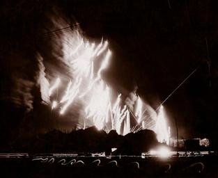 Keywords: Peleliu's Great White Way.jpg Peleliu's Great White Way time exposure photo of Japanese attack on U S Marine positions 1944 <br />This dramatic time exposure made in the Fall of 1944 records a fierce night assault by Japanese forces against U S Marines on Peleliu in the Palau Islands Japanese forces were dug in behind Bloody Nose Ridge visible below a night sky lit up by parachute flares The long straight lines are tracer shells from Japanese gunners firing on Marine aircraft At the right edge of the photo a Marine machine gun is firing The headlights of a passing Jeep are recorded The wavy line is from a flashlight carried by a Marine as he runs for cover The bright burst of light at the lower right is from a motion picture projector showing a movie just prior to the attack This incredible picture was made by SSgt William G Wilson USMC a combat cameraman with the 2nd Marine Air Wing The photo was published in over 500 newspapers and was recognized by CDR Edward Steichen Chief of Naval Photography as one of the best pictures depicting action in the Pacific theater Official USMC photo by SSgt William G Wilson 1944 SSgt William G Wilson PD-USGov-Military-Navy Original upload log en wikipedia Peleliu 27s+Great+White+Way jpg wikitable - 2010-01-02 01 49 5472×4480× 19980477 bytes W3BIG Peleliu's Great White Way time exposure photo of Japanese attack on U S Marine positions 1944 Official USMC photo by SSgt William G Wilson 1944 SSgt William G Scanned with HP Photosmart C7200 Battle of Peleliu Tracers