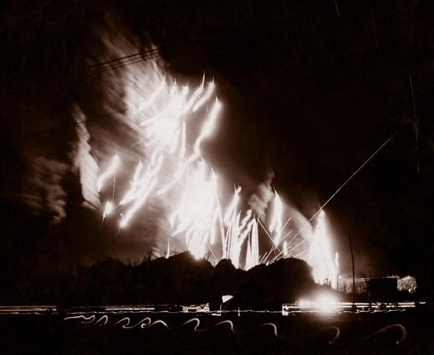 MAKE A MEME View Large Image Peleliu's Great White Way.jpg Peleliu's Great White Way time exposure photo of Japanese attack on U S Marine positions 1944 <br />This dramatic time exposure made in the Fall of 1944 records a fierce night assault by Japanese forces against ...