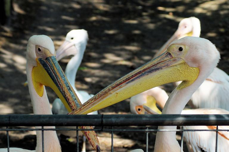 Keywords: pelicans pelecanus conspicillatus pelican water bird bill plumage heads