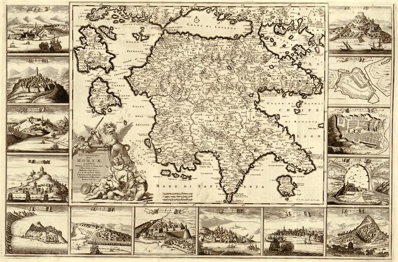 Keywords: Peloponnesus, Presently the Kingdom of Morea, Clearly Divided into All Its Provinces, Both Contemporary and Ancient, and to which is Added the Islands of Cefalonia, Zante, Cerigo, and St. Maura WDL373.png Artwork ru Вит Ф еде ик де fr Wit Frederik de en Wit Frederik de zh 维特 弗雷德里克·迪 pt Wit Frederik de ar ويت فريدريك دي es Wit Frederik de ru Пелопоннес в настоящее в емя Ко олевство о еа с четким делением на п овинции как сов еменные так и д евние к кото ому добавлены ост ова Кефалония Закинтос Це иго и Санта- ау а fr Peloponèse actuellement appelé le Royaume de Morée  divisé en provinces à la fois contemporaines et anciennes à laquelle s'ajoutent les îles de Céphalonie Zante Cythère et Saint - en Peloponnesus Presently the Kingdom of Morea Clearly Divided into All Its Provinces Both Contemporary and Ancient and to which is Added the Islands of Cefalonia Zante Cerigo and St Maura zh 伯罗奔尼撒半岛,目前,摩里亚国清晰明了 划分了 份,包括当代和古代,并将凯法利尼亚岛 赞特岛 察里哥岛和 毛拉岛划入其内 pt Peloponeso atual Reino de Moreia claramente dividido em todas as suas províncias tanto Contemporâneas quanto Antigas e ao qual foram adicionadas as ilhas de Cefalonia Zante Cerigo e Sta ar البيلوبونيز، حاليا مملكة موريا، منقسمة بوضوح إلى جميع مقاطعاتها، سواء القديمة أو المعاصرة، والتي تضاف إليها جزر سيفالونيا، وزانتي، وسيريغو، وسانت ماورا ru а этой ка те конца XVIIвека созданной голландским г аве ом издателем и п одавцом ка тог афической п одукции Ф еде иком де Витом годы жизни с 1629 или 1630 по 1706 изоб ажен полуост ов Пелопоннес в Г еции а на ужных полях п иведено 14 изоб ажений ук епленных го одов названия кото ых указаны по-итальянски а иллюст ации в нижнем левом углу изоб ажен лев с фигу ами по абощенных людей на богато ук ашенном ка туше с заглавием Ка та была составлена в то в емя когда Г еция находилась под владычеством Османской импе ии Ту ки п едоставили х истианам Г еции елигиозную свободу но ущемили их в воп осах авенства и политических п ав Родился Де Вит в Гоуде а затем пе еб ался в Амсте дам где соде жал магазин на Калве ст аат В число его абот входили мо ские атласы атласы ми а настенные ка ты и го одские путеводители с планами голландских и ев опейских го одов После 1674 года он п иоб ел клише из медных пластин для го одских путеводителей Янсониуса и Блау А в 1688 году он п иоб ел у Гене альных штатов  так называлось в то в емя голландское п авительство п аво на публикацию своих ка т Ка ты Де Вита пользовались сп осом по всей Ев опе и п одавались вплоть до 1763 года фи мой Йоханнеса Ковенса и Ко неля о тье <br>Ост ов Кефалония Г еция ; Ост ов Кити а Г еция ; Ост ов Лефкас Г еция ; Пелопоннес Г еция ; Закинтос Г еция ном fr Cette carte de la fin du 17ème siècle par le graveur éditeur et carthotèque hollandais Frederick de Wit 1629 ou 1630-1706 présente la péninsule du Péloponnèse en Grèce Les marges externes contiennent les vues de 14 villes fortifiées dont les noms sont donnés en italien L'illustration dans la partie inférieure gauche montre un lion avec des figures humaines réduites en esclavage dans un cartouche décoré avec titre Au moment où la carte fut dressée la Grèce était sous domination de l'Empire ottoman Les Ottomans accordaient la liberté religieuse aux chrétiens de Grèce mais pas la pleine égalité ni de droits politiques De Wit est né à Gouda et déménagea à Amsterdam où il entretint son commerce sur la Kalverstraat Ses ouvrages comprenaient des atlas mondiaux et maritimes des cartes murales et des livres de ville contenant les plans de villes néerlandaises et européennes Quelque temps après 1674 il acquit les plaques de cuivre des livres de ville de Jansonnius et Blaeu En 1688 il obtint des États généraux le gouvernement néerlandais d'alors le privilège de publier ses cartes Les cartes de De Wit étaient demandées dans toute l'Europe et furent vendues jusqu'en 1763 par la compagnie de Johannes Covens et Corneille Mortier <br>Île de Céphalonie Grèce ; Île de Cythère Grèce ; Île de Leucade Grèce ; Péloponèse Grèce ; Zakynthos Grèce Nome en This late-17th century map by the Dutch engraver publisher and map seller Frederick de Wit 1629 or 1630-1706 shows the Peloponnesian Peninsula of Greece The outer margins contain views of 14 fortified towns the names of which are given in Italian The illustration at the lower left shows a lion with enslaved human figures in an embellished cartouche with title At the time the map was made Greece was under the rule of the Ottoman Empire The Ottomans allowed religious freedom to the Christians of Greece but