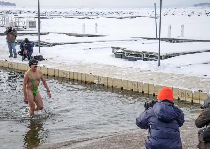 Keywords: penguin plunge borat vermont special olympics winter fund raiser costume person people male happy mature smiling tradition cheerful man character