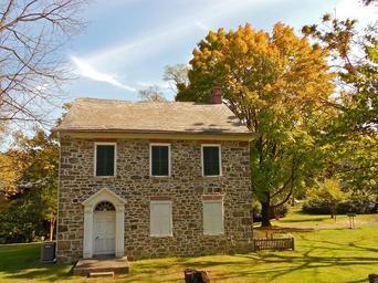 Keywords: pennsylvania house home stone landmark historical architecture fall autumn sky clouds trees foliage grass nature outside country countryside