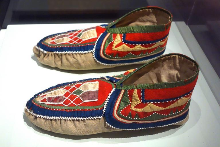 Keywords: Penobscot moccasins, northeastern region, 1845-1855 - Bata Shoe Museum - DSC00461.JPG en Exhibit in the Bata Shoe Museum Toronto Ontario Canada This item is old enough so that its design is in the public domain The museum permitted photography without restriction 2013-07-04 11 12 20 own Daderot cc-zero Moccasins in the Bata Shoe Museum Uploaded with UploadWizard Penobscot |