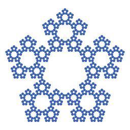 Keywords: Pentaflake-NC 4th Iteration Blue.svg en Blue pentaflake without center pentagon 4th iteration 2014-10-28 16 19 27 own 0x0077BE other versions cc-zero Koch snowflakes Pentagonal fractals Uploaded with UploadWizard Order 4
