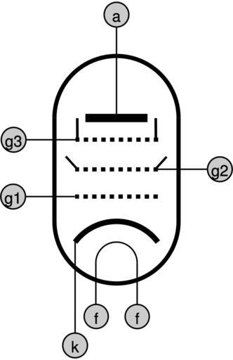 | Keywords: Pentode-Symbol de.svg Símbolo de un pentodo a - Ánodo k - cátodo f - calentador G1 - rejilla de control g2 - rejilla de pantalla g3 - rejilla supresora gezeichnet mit Xfig / Inkscape 2007-03-23 erstellt von de User RokerHRO geaendert von de User Fgli Pentode symbol pl svg de German Wikipedia RokerHRO Vacuum tube symbols Pentodes |