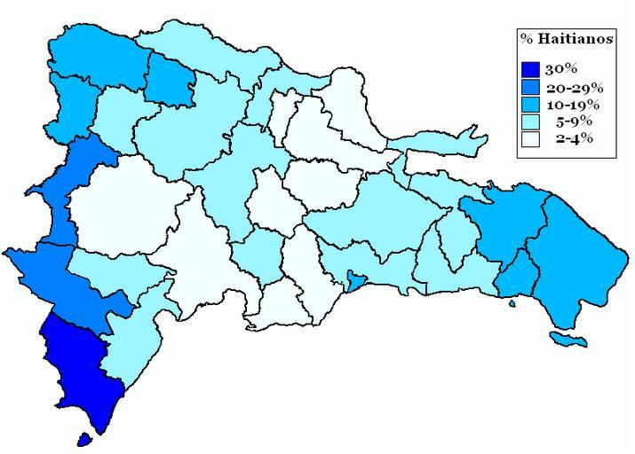 | Keywords: People of Haitian origin in the Dominican Republic.png en The map shows the percentage of the Haitian-born people among the population for each province in the Dominican Republic <br />Numbers have been rounded to nearest integer for coloring purposes es La carta muestra la proporción de extranjeros nacidos en Haití a nivel nacional en la República Dominicana por cada provincia 2014-05-17 16 44 26 own Inhakito Source Primera Encuesta Nacional de Inmigrantes ENI-2012 in Spanish Santo Domingo Instituto Nacional de Estadística former 'Oficina Nacional de Estadística' 2012 cc-zero Maps of the Dominican Republic Diasporas Ethnographic maps Haitian diaspora in the Dominican Republic Immigrants to the Dominican Republic Uploaded with UploadWizard |