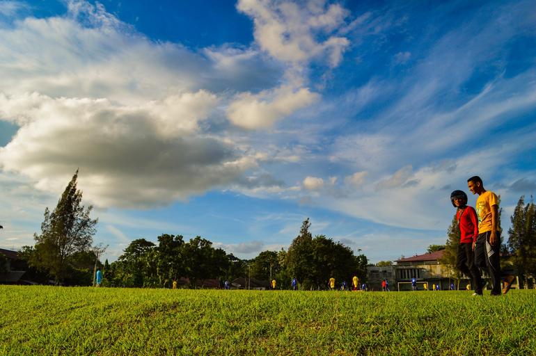 Keywords: people walking strolling park grass sky clouds outdoors scenic tranquil weather meteorology cloudscape environment nature