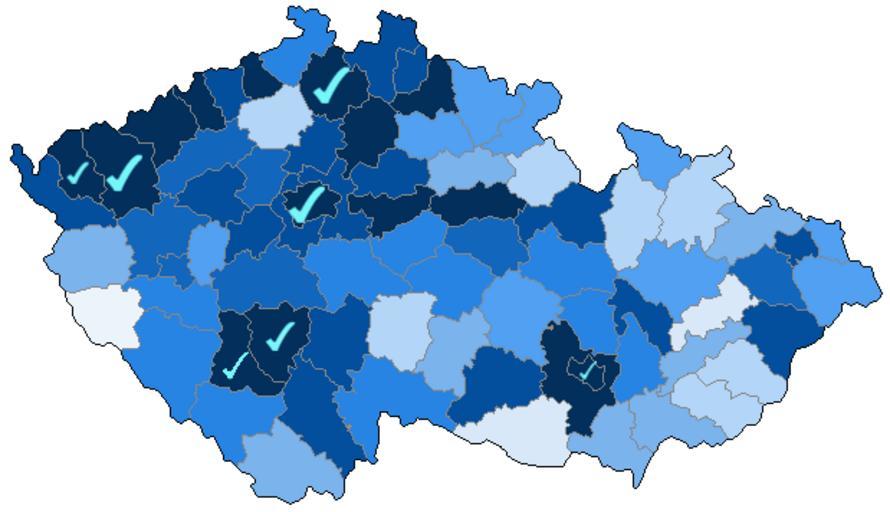 | Keywords: Percentage of photos of protected areas in the Czech Republic-2015-08-02.png Percentage of photos of protected areas in the Czech Republic actual to 2012-06-18 Snímek ukazuje procentuální nafocení chráněných území v Česku ke dni 2012-06-18 022f5c 100 - 90 044f9d 89 9 - 80 1266bc 79 9 - 70 2784e3 69 9 - 60 51a0f1 59 9 - 50 7bb3ed 49 9 - 40 b2d5f8 39 9 - 30 d8e8f8 29 9 - 20 ecf4fb 19 9 - 10 e5e6e7 9 9 - 0 1 ffffff 0 Czech_Republic_districts_2007_blank png Yes_check svg 2010-12-30 10 30 UTC Czech_Republic_districts_2007_blank png User Miaow Miaow Yes_check svg SVG by Gregory Maxwell modified by WarX derivative work Chmee2 <span class signature-talk >talk</span> <gallery> File Percentage of photos of protected areas in the Czech Republic png Version from 2010-12-26 File Percentage of photos of protected areas in the Czech Republic in 2011-06-26 png Version from 2011-06-26 File Percentage of photos of protected areas in the Czech Republic in 2011-11-11 png Version from 2011-11-11 File Percentage of photos of protected areas in the Czech Republic 2012-06-18 png Version from 2012-06-18 </gallery> Yes_check svg Districts of the Czech Republic with borders as valid</nowiki> File Yes_check svg licensed with PD-ineligible 2007-06-11T15 18 49Z Meithal 600x600 2723 Bytes <nowiki>Reverted to earlier revision</nowiki> 2006-07-31T05 06 11Z Erin Silversmith 600x600 2723 Bytes <nowiki>Reverted to earlier revision</nowiki> 2006-07-30T11 58 59Z Erin Silversmith 600x600 809 Bytes <nowiki>Redone by hand All unnecessary code deleted Gradient simplified Strange flat bits made round </nowiki> 2006-06-01T19 48 37Z WarX 600x600 2723 Bytes <nowiki>nicer </nowiki> 2005-09-18T13 41 54Z Gmaxwell 600x600 914 Bytes <nowiki>Yes check SVG by Gregory Maxwell Copyright 2005 GFDL-1 2 SVG</nowiki> Uploaded with derivativeFX Maps of districts in the Czech Republic WikiProjekt Chráněná území |