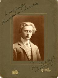 Keywords: historical vintage black and white blackandwhite portraits artists musicians 19th centruy 19thcentruy 1800s old //bergenbibliotek.no/digitale-samlinger” bergenbiblioteknodigitalesamlinger” people black and white Artist: Bartletto Date/place: April, 1905 Subject: Percy Grainger Medium: Photographic posetive Notes: Percy Aldridge Grainger (8 July 1882 – 20 February 1961) was an Australian-born composer, arranger and pianis. Dedication on the photo: "In most heattfelt thankfulness & admiration, Percy Grainger 4. 05". The photo was donated to Bergen Public Library by the Rabe family. Inscription on the back of the photo: "From Nina Grieg Troldhaugen 1916". Original belongs to the Archives at Bergen Public Library Artist: Bartletto Date/place: April, 1905 Subject: Percy Grainger Medium: Photographic posetive Notes: Percy Aldridge Grainger (8 July 1882 – 20 February 1961) was an Australian-born composer, arranger and pianis. Dedication on the photo: "In most heattfelt thankfulness & admiration, Percy Grainger 4. 05". The photo was donated to Bergen Public Library by the Rabe family. Inscription on the back of the photo: "From Nina Grieg Troldhaugen 1916". Original belongs to the Archives at Bergen Public Library |