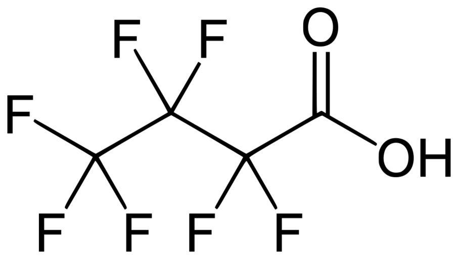 Keywords: Perfluorobutyric acid.svg en perfluorobutyric acid; Heptafluorobutyric acid; Perfluorobutanoic acid; Heptafluorobutanoic acid; HFBA Own Yikrazuul 2009-06-23 Perfluorinated compounds Carboxylic acids