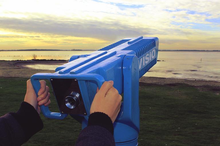 Keywords: periscope telescope metal still close up view stainless steel water holiday close binoculars watch lake waters bank holidays travel nature relaxation rest black and white break mood hands direction