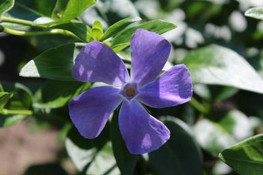 Keywords: periwinkle blossom bloom purple bush plant green violet ground cover flower