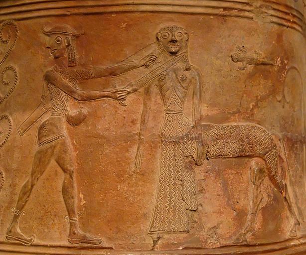 Keywords: Perseus Medusa Louvre CA795.jpg artist Perseus left wearing a hat winged boots and the kibisis slung over his shoulder averts his gaze as he kills Medusa figured here as a female centaur Detail from an orientalizing relief pithos Persée à gauche portant un chapeau et des bottes ailées avec la kibisis sur l'épaule détourne le regard pendant qu'il tue Méduse représentée ici comme un centaure femelle Détail d'un pithos orientalisant à reliefs ca 660 BC terracotta ; decoration incised decoration stamped cm 130 Institution Louvre room ID not on view object department Greek Etruscan and Roman antiquities 5042 object history Thebes Greece Boeotia credit line ProvenanceEvent purchase 1897 accession number Louvre number 795 Marie-Lan Nguyen 2007 other versions Ancient Greek pottery in France Paris 7th-century BC reliefs 660s 660s BC pottery Perseus and Medusa in sculpture Talaria Pithoi Boeotian Orientalizing pottery Greek antiquities in the Louvre - Room 1 |