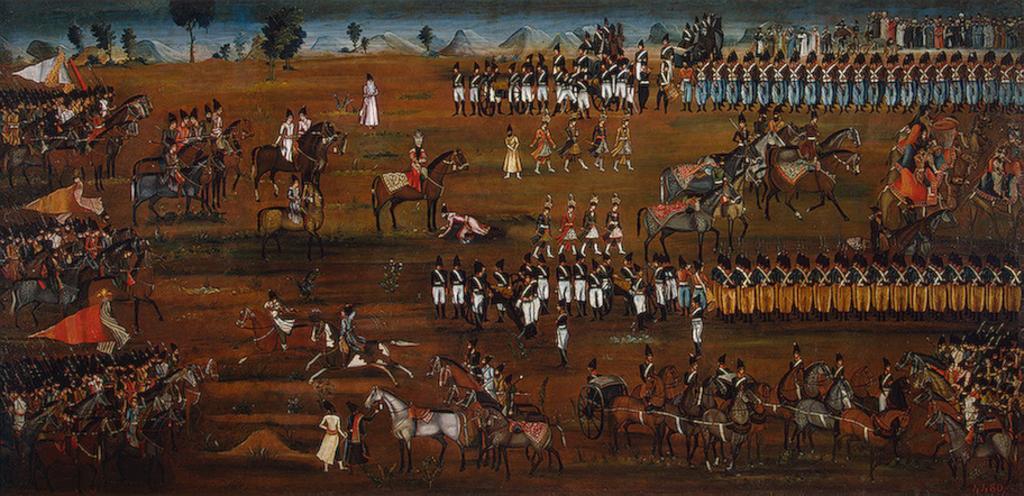 MAKE A MEME View Large Image Persian Military Review with Fath Ali Shah and Abbas Mirza.jpg Commonist Persian 19th Century Soldiers Oil on canvas 203x415 cm Iran Qajar Dynasty Circa 1815/1816 A multifigure composition spreads across this huge canvas depicting a real ...
