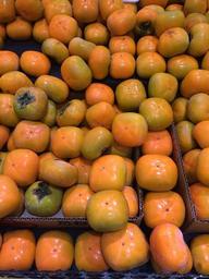 Keywords: persimmon young and vivacious autumn orange green yellow real fruit pile up seiyu ltd living supermarket fruits and vegetables department heisei-cho yokosuka japan