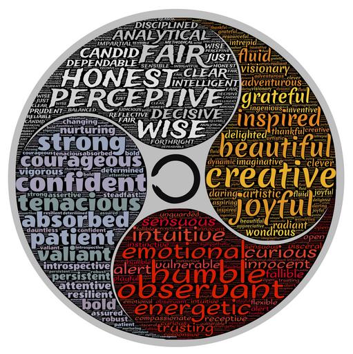 Keywords: person character characteristics essence being balance dynamism wholeness completeness integration growth dynamic wheel mandala self-discovery self-awareness maturation transformation becoming growing evolving human qualities geometric badge circle round health quality |