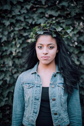 Keywords: person gitl young woman portrait head face ivy black hair attractive female eyes jeans jacket serious looking