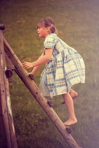 Keywords: person human child girl dress climb head play in motion out nature country life portrait