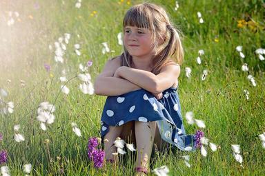 Keywords: person human child girl blond meadow grass flowers nature land love portrait