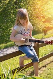 Keywords: person human child girl guitar music out nature