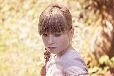 Keywords: person human child girl blond face view out nature in thoughts portrait close