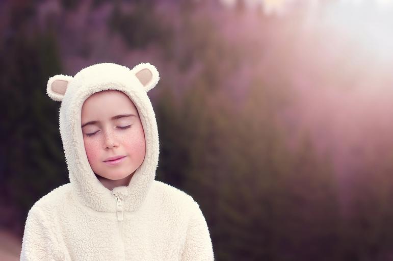 Keywords: person human female girl bear suit costume nature out eyes closed face rest relaxation relaxed portrait close