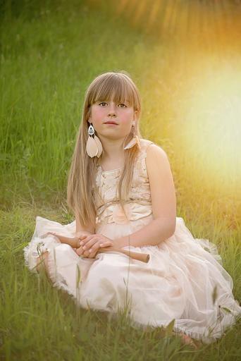 Keywords: person human girl child meadow out grass nature flute lichtstimmung portrait