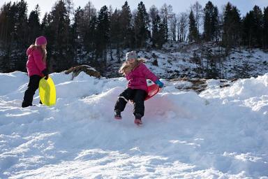 Keywords: personal human children winter snow fun slip ride on bob in motion in action
