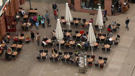Keywords: perspective top gastronomy human chairs dining tables city view outside catering small tiny