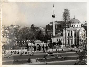| Keywords: pertevniyal camii pertevniyalcamii pertevniyal mosque pertevniyalmosque aksaray valide camii aksarayvalidecamii aksaray valide mosque aksarayvalidemosque sarkis balyan sarkisbalyan osep eski i̇stanbul eskiistanbul old i̇stanbul oldistanbul mimari architecture aksaray i̇stanbul istanbul salt araştırma saltaraştırma salt research saltresearch salt online saltonline outdoor monochrome city www.archives.saltresearch.org/R/-?func=dbin-jump-full&amp... Pertevniyal Valide Sultan Camii, İstanbul. Fotoğraf: Teknicolor Fotoğraf Bürosu (16.03.1960) “Fatih İlçesi’nde, Aksaray Meydanı’nda ve meydanın kuzeybatı kesimindedir. [...] Abdülaziz’in (hd 1861-1876) annesi Pertevniyal Valide Sultan tarafından yaptırılmıştır. Pertevniyal Valide Sultan’ın çok önem vererek yaptırdığı cami, aslında mektep, türbe, muvakkithane ve sebilden oluşan bir külliye olarak tasarlandı. [...] Yapının mimarı Sarkis Balyan’dır, tasarıma Agop Balyan’ın da katıldığı, çizim işlerinde desinatör Osep’in çalıştığı bilinmektedir. [...] Valide Camii, İstanbul’un kentsel düzenleme çalışmalarında en çok zarara uğrayan tarihi miraslarından biridir. 1956-1959 yılları arasında Aksaray Meydanı düzenlemesi ve Vatan ve Millet caddelerinin açılması çalışmaları sırasında Pertevniyal Sultan’ın türbesi ile muvakkithane ve sebil kaldırıldı. [...] Yol açımı sırasında Millet Caddesi’nin kotu yükseltildiğinden, avlunun güney kapısı yoldan aşağı düzeyde kaldı. Doğudan batıya uzanan bir rampa ile kapıya ulaşım sağlandı. 1969’da başlayan altgeçit ve üst yol çalışmaları sonunda cami de iyice gömülü bir pozisyona itildi.” Afife Batur Kaynak: “Dünden Bugüne İstanbul Ansiklopedisi”, Kültür Bakanlığı ve Tarih Vakfı ortak yayını, cilt 7, s. 360-362, 1994. SALT Araştırma, Ali Saim Ülgen Arşivi www.archives.saltresearch.org/R/-?func=dbin-jump-full&amp... Pertevniyal Valide Sultan Camii, İstanbul. Fotoğraf: Teknicolor Fotoğraf Bürosu (16.03.1960) “Fatih İlçesi’nde, Aksaray Meydanı’nda ve meydanın kuzeybatı kesimindedir. [...] Abdülaziz’in (hd 1861-1876) annesi Pertevniyal Valide Sultan tarafından yaptırılmıştır. Pertevniyal Valide Sultan’ın çok önem vererek yaptırdığı cami, aslında mektep, türbe, muvakkithane ve sebilden oluşan bir külliye olarak tasarlandı. [...] Yapının mimarı Sarkis Balyan’dır, tasarıma Agop Balyan’ın da katıldığı, çizim işlerinde desinatör Osep’in çalıştığı bilinmektedir. [...] Valide Camii, İstanbul’un kentsel düzenleme çalışmalarında en çok zarara uğrayan tarihi miraslarından biridir. 1956-1959 yılları arasında Aksaray Meydanı düzenlemesi ve Vatan ve Millet caddelerinin açılması çalışmaları sırasında Pertevniyal Sultan’ın türbesi ile muvakkithane ve sebil kaldırıldı. [...] Yol açımı sırasında Millet Caddesi’nin kotu yükseltildiğinden, avlunun güney kapısı yoldan aşağı düzeyde kaldı. Doğudan batıya uzanan bir rampa ile kapıya ulaşım sağlandı. 1969’da başlayan altgeçit ve üst yol çalışmaları sonunda cami de iyice gömülü bir pozisyona itildi.” Afife Batur Kaynak: “Dünden Bugüne İstanbul Ansiklopedisi”, Kültür Bakanlığı ve Tarih Vakfı ortak yayını, cilt 7, s. 360-362, 1994. SALT Araştırma, Ali Saim Ülgen Arşivi |