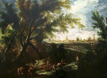 Keywords: Peruzzini Landscape with a water carrier.jpg Artwork Creator Antonio Francesco Peruzzini formerly attributed to secondhalf other date century 17 oil canvas cm 114 5 144 Institution National Museum Warsaw Not on view accession number 124666 object history < 1846 purchase Aleksander Kokular Warsaw ProvenanceEvent 1937 purchase National Museum in Warsaw credit line Jan Białostocki Maria Murdzeńska Danuta Książkiewicz Jan Kuglin 1969 Catalogue of paintings foreign schools Vol 1 National Museum in Warsaw cat no 724 p 246 own BurgererSF See below PD-old-100 DEFAULTSORT 1650 after; Landscape with a water carrier Antonio Francesco Peruzzini Italian paintings in the National Museum in Warsaw Landscape paintings in the National Museum in Warsaw 17th-century paintings in the National Museum in Warsaw |