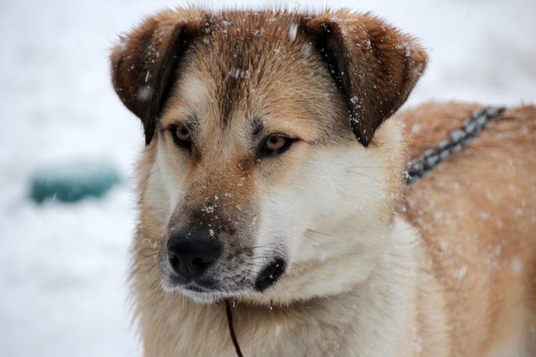 Keywords: pet dog redhead large animal views cute closeup view animals pets portrait darling winter snow krupnyj plan partly cloudy the first snow cold