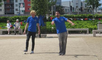 Keywords: Pétanque jeunm'lage Saint Hélyi-Avranches Jèrri Mai 2011 13.jpg Compétition d'pétanque pouor lé jeunm'lage Saint Hélyi-Avranches à Saint Hélyi Jèrri Mai 2011 Pétanque competition between twin towns Saint Helier and Avranches hosted in Saint Helier Jersey May 2011 own photo 2011-05-14 14 24 59 Man vyi 2011 in Saint Helier Jersey Weighbridge Place Saint Helier Pétanque jeunm'lage Saint Hélyi-Avranches Jèrri Sports in Normandy