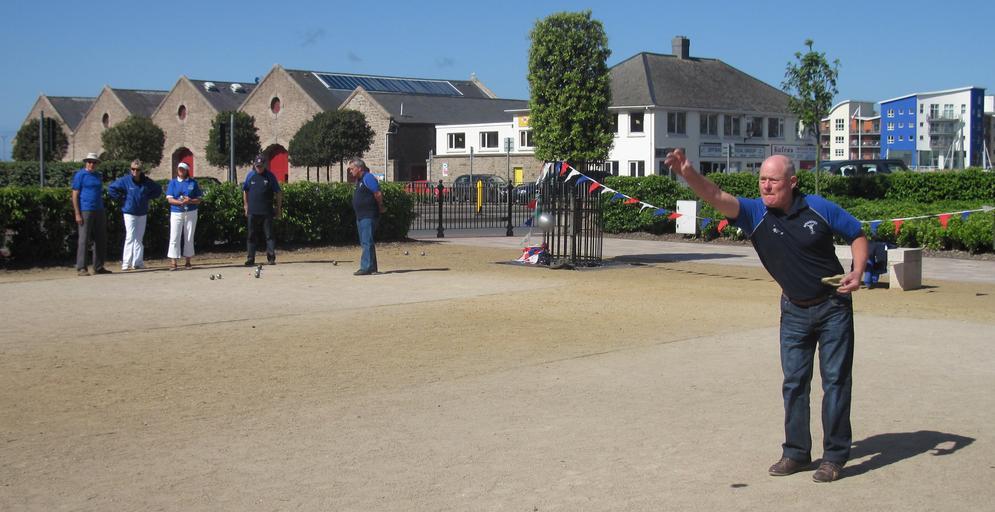 Keywords: Pétanque jeunm'lage Saint Hélyi-Avranches Jèrri Mai 2011 04.jpg Compétition d'pétanque pouor lé jeunm'lage Saint Hélyi-Avranches à Saint Hélyi Jèrri Mai 2011 Pétanque competition between twin towns Saint Helier and Avranches hosted in Saint Helier Jersey May 2011 own photo 2011-05-14 10 23 23 Man vyi 2011 in Saint Helier Jersey Weighbridge Place Saint Helier Pétanque jeunm'lage Saint Hélyi-Avranches Jèrri Sports in Normandy