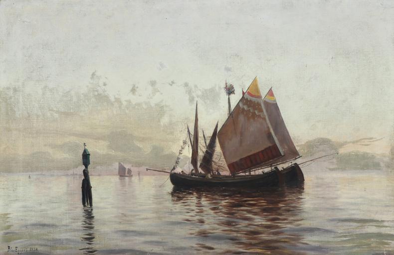 Keywords: Peter Eggers - Marine - 1884.png Johan Peter Eggers 1855-1907 1884 technique Oil canvas cm 54 83 object history Auctioned by Bruun-Rasmussen Auctions December 2016 credit line Peter Eggers 1884 lower left signature and date accession number http //www bruun-rasmussen dk/search do pg 9 iid 300898945 lang en cid 453 mode detail bruun-rasmussen dk PD-old-auto-1923 1907 19th-century oil marine paintings 1884 oil on canvas paintings |
